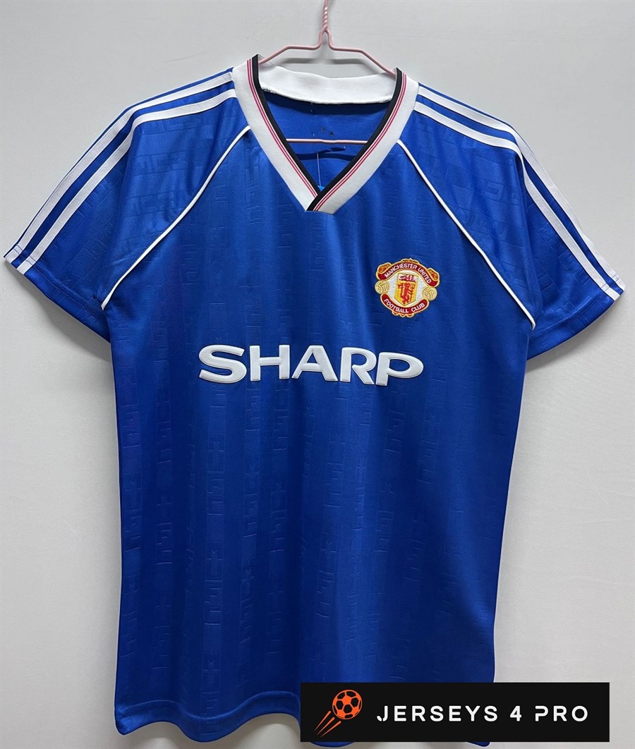 The striking blue color, clean detailing, and Sharp branding combine to create a timeless retro look that still turns heads today. A must-have piece for lovers of vintage football kits.