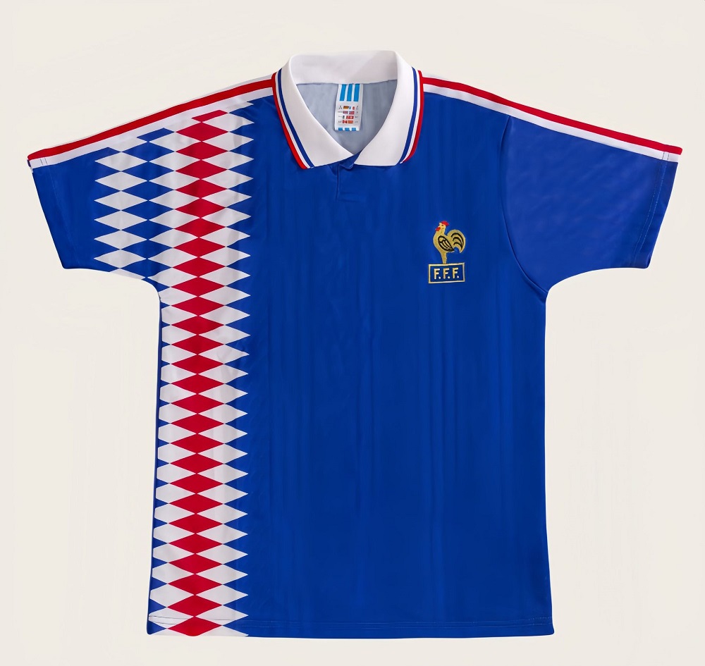 Among retro football collectors, the diamond-patterned France jersey remains one of the most recognizable and visually distinct 90s designs. Its balance of tradition and artistic flair makes it a standout in any collection.