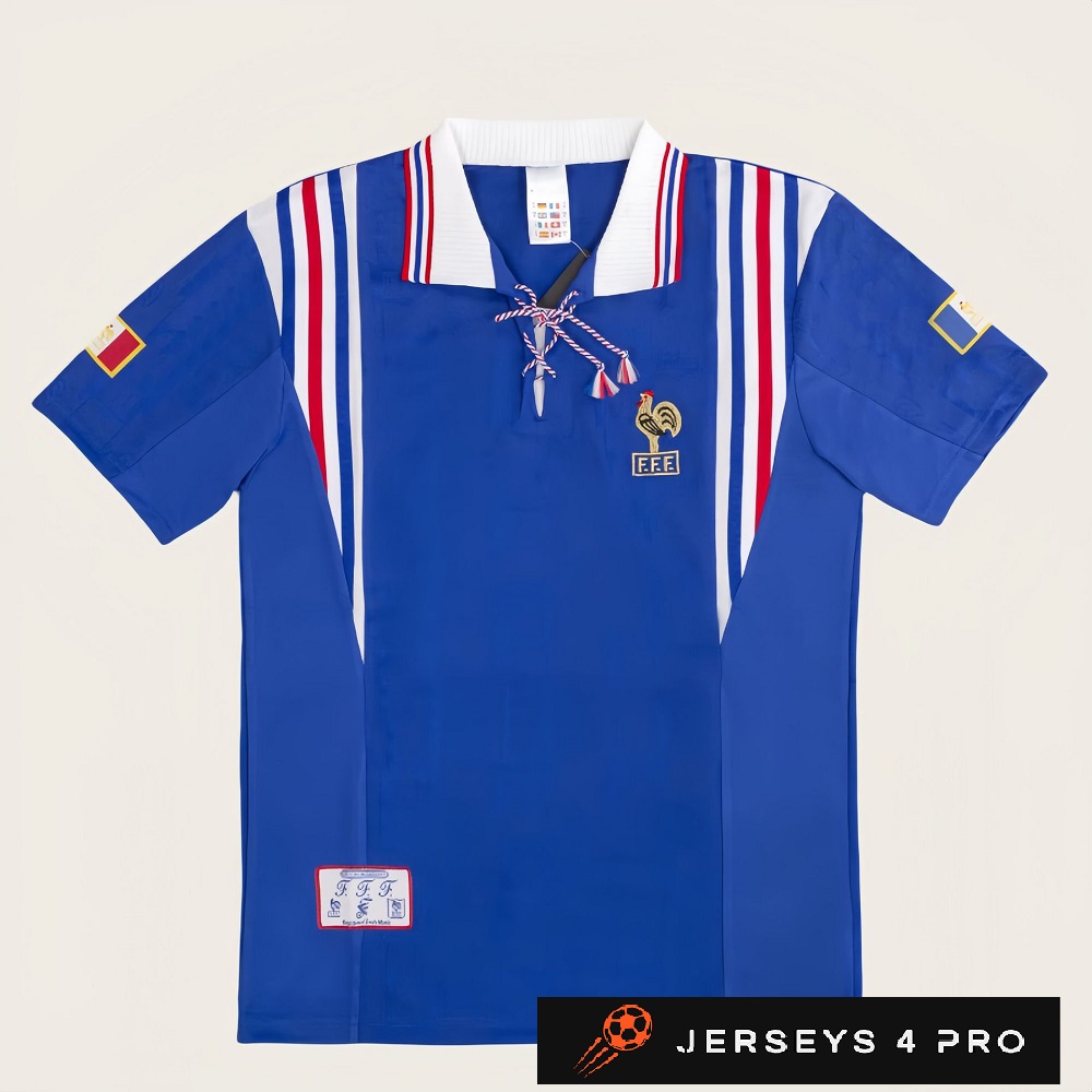 The mid-90s marked an exciting turning point for France supporters, and this jersey captures that transition beautifully. With its traditional lace-up collar and striking stripe layout, it stands out as one of the most visually distinct designs from the decade.