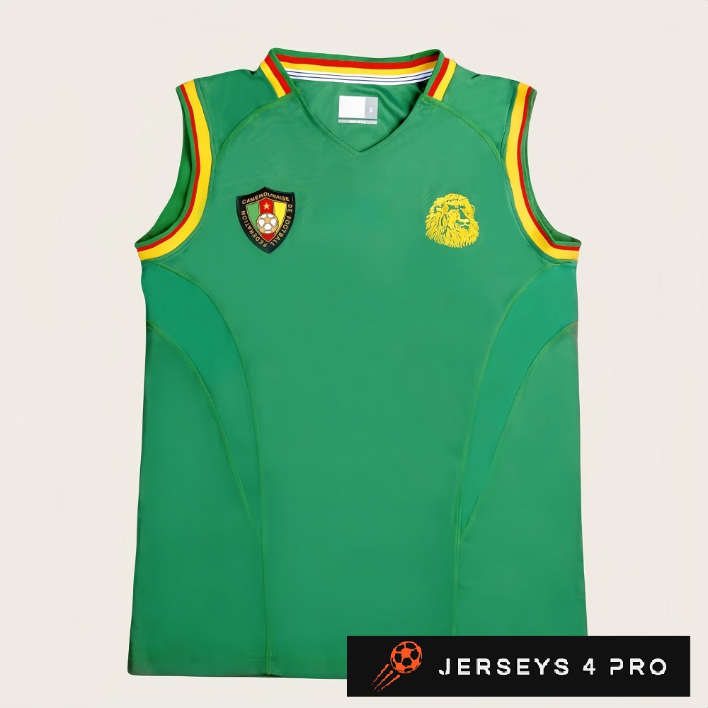 This 2002 Cameroon home retro jersey brings back one of the most daring and unforgettable kit designs in football history. Its sleeveless construction, vibrant colors, and powerful lion emblem create a look that broke boundaries and showcased the fearless identity of the Indomitable Lions. Fresh, striking, and full of character, this shirt remains a standout piece for fans and collectors.