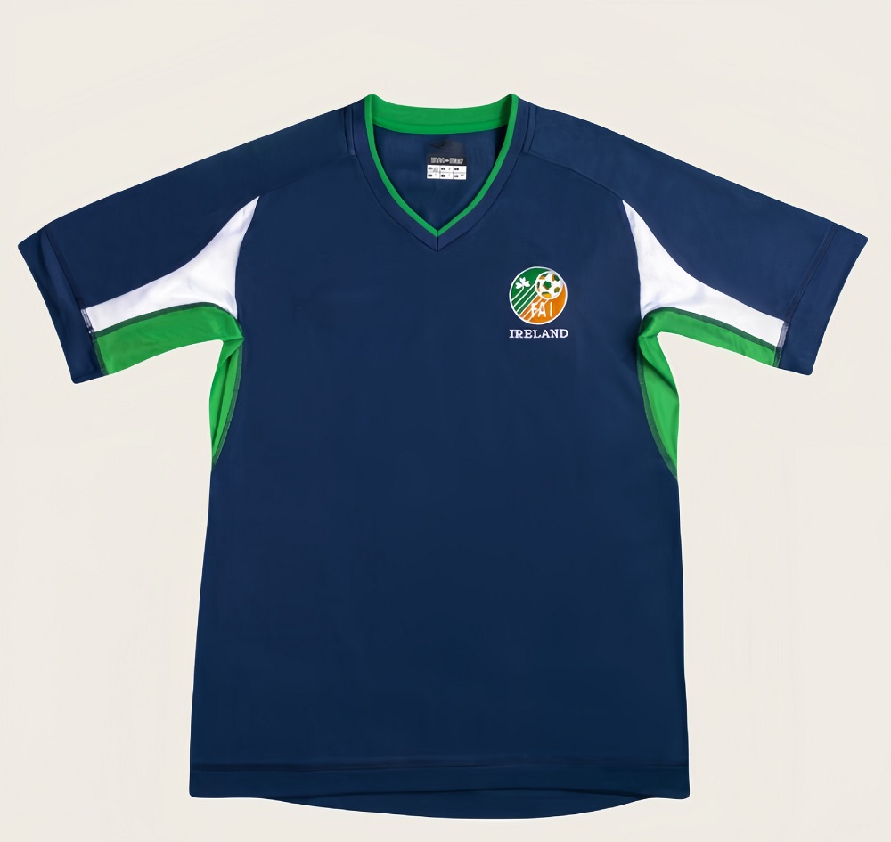 This second kit design reflects the bold attitude and unity that defined Ireland during that time. Fans who remember the era often associate the navy kit with grit and resilience—qualities still celebrated today.