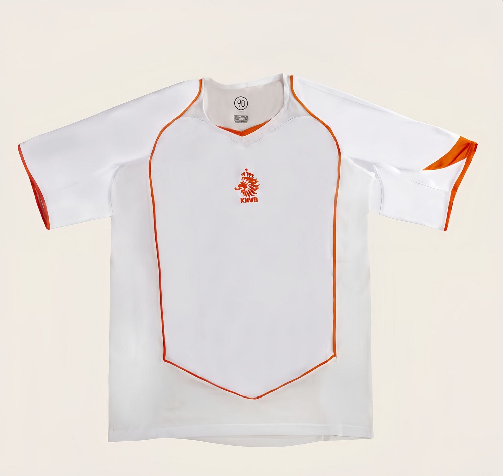 The 2004 Netherlands away retro football jersey brings back a sleek and modern look from a dynamic era of Dutch football. With its crisp white base and sharp orange detailing, this shirt captures the blend of elegance and athletic energy that defined the Netherlands throughout the mid-2000s.