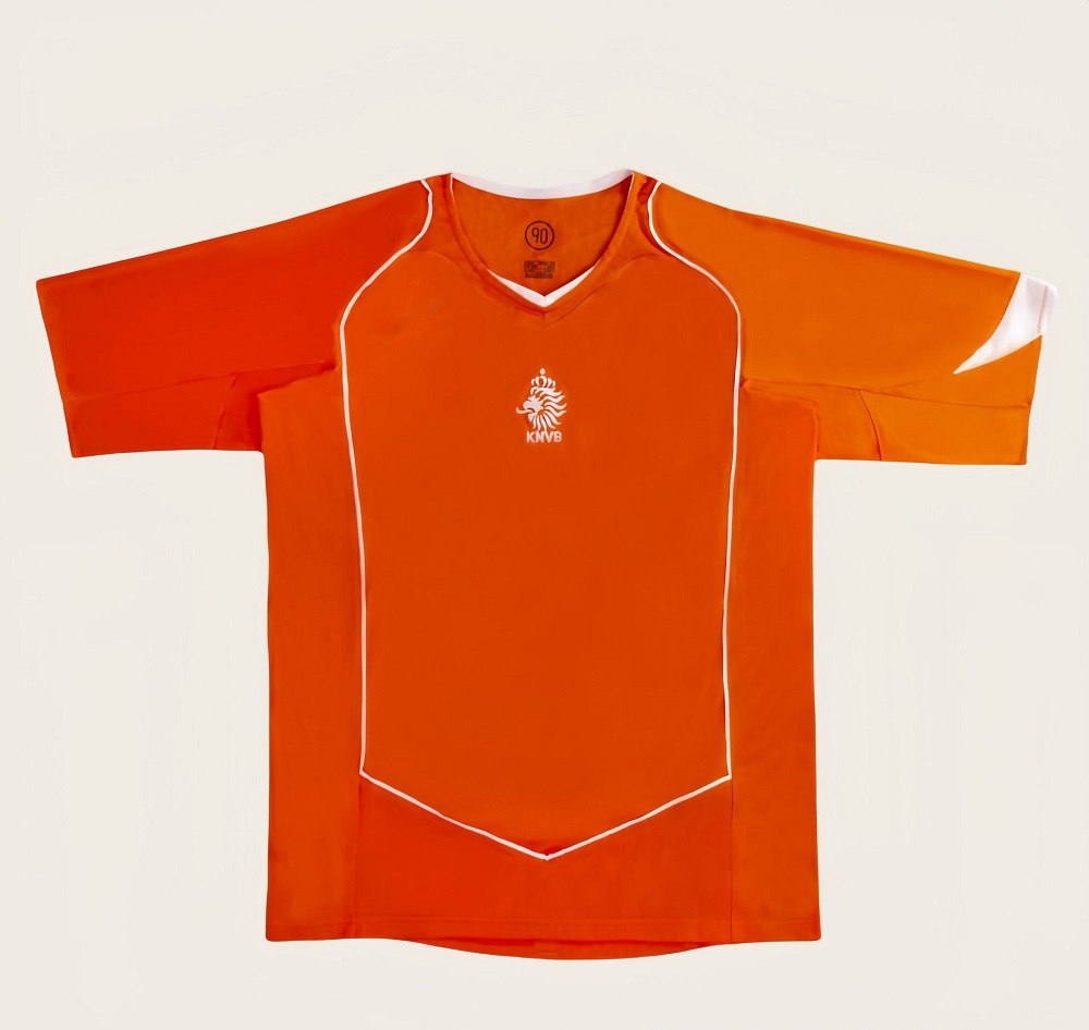 The 2004 period is remembered for attacking flair, technical quality, and a fresh generation of Dutch talent. This jersey matches that spirit perfectly with a bold, forward-focused design that departed from the simpler looks of earlier years.
